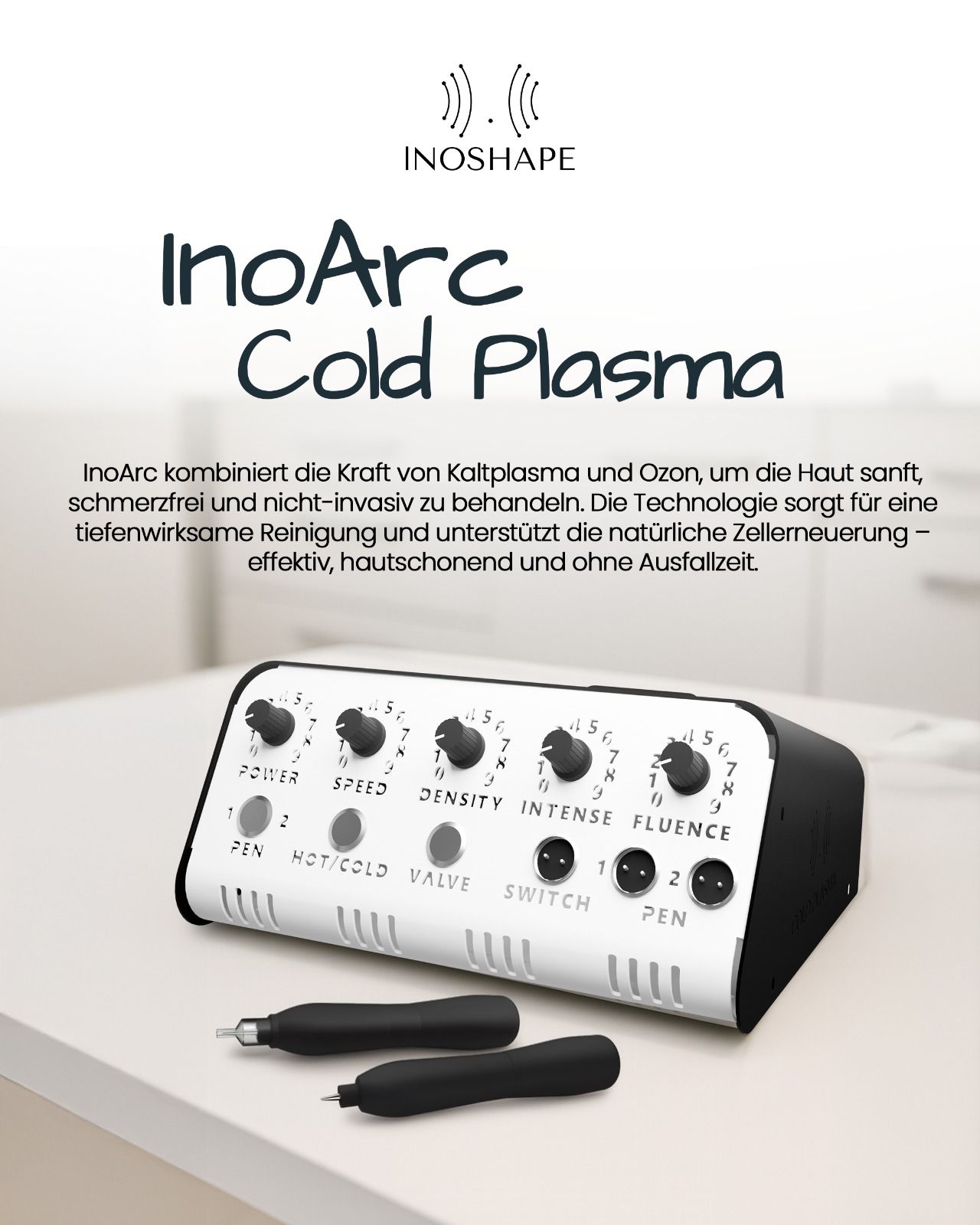 INOARC Coldplasma behandelt effektiv Aknenarben und Pigmentflecken, indem es die Zellregeneration massiv stimuliert und gleichzeitig Entzündungen hemmt. Die Technologie steigert die Mikrozirkulation und fördert die Neubildung von Kollagen, wodurch das Gewebe geglättet und Narben sichtbar angehoben werden. Zusätzlich wird überschüssiges Melanin gezielt aufgehellt, was den Hautton schonend ausgleicht und Pigmentflecken reduziert. Das Gerät kombiniert stabil Kalt- und Warmplasma, um je nach Indikation unterschiedliche Hautschichten präzise zu erreichen. Erste sichtbare Ergebnisse wie feinere Poren und ein ebenmäßigerer Teint treten in der Regel nach drei bis vier Sitzungen ein.